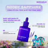- Công thức kết hợp GHK-Cu và phức hợp peptides mang lại Moody Sapphire phù hợp sử dụng trên da lão hóa, da tổn thương, da mỏng, đỏ, nhạy cảm.