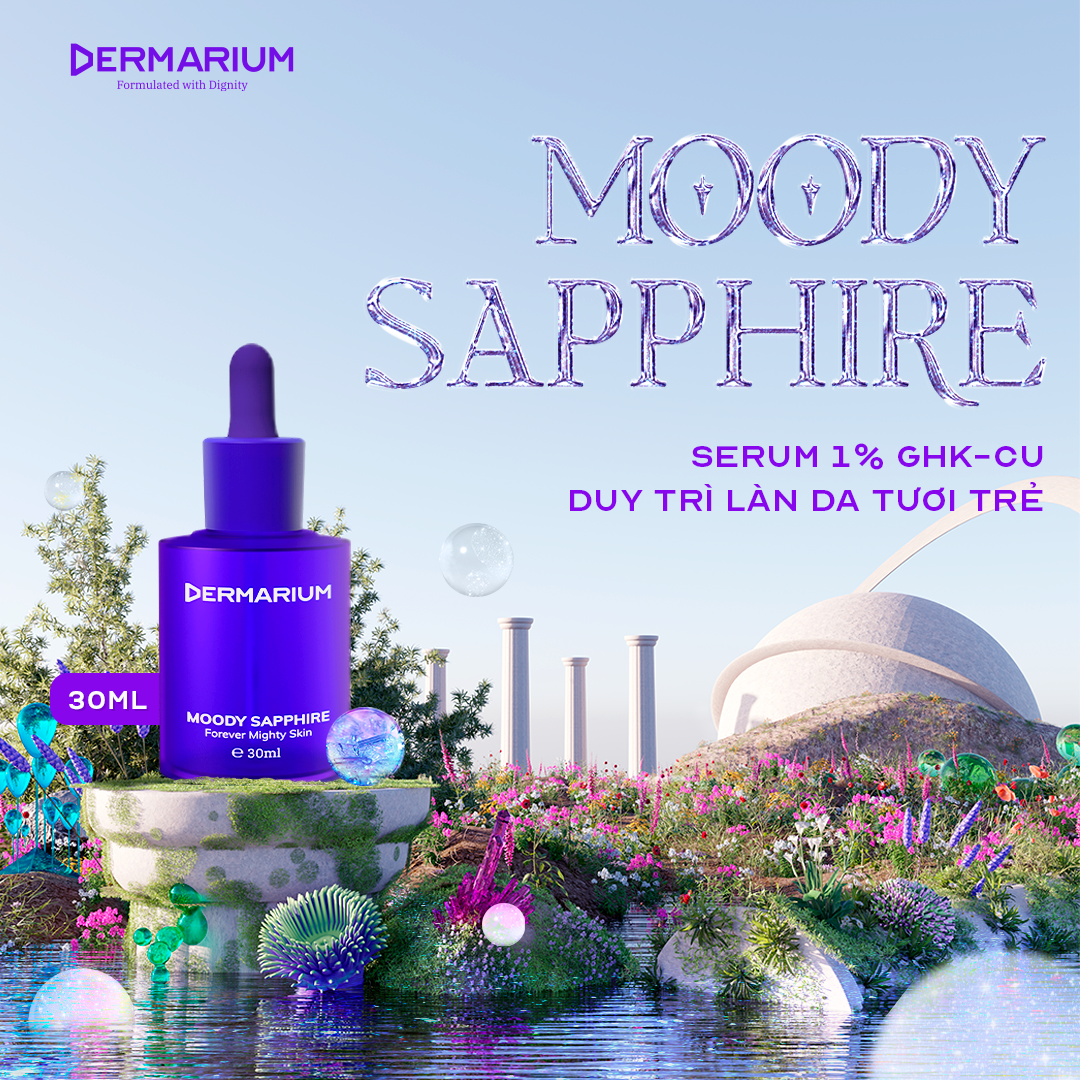 - Moody Sapphire là sản phẩm Việt Nam đầu tiên ứng dụng GHK-Cu ở nồng độ 1%, được phát triển với định hướng tối ưu hiệu quả sử dụng đồng thời đảm bảo khả năng dung nạp của làn da.